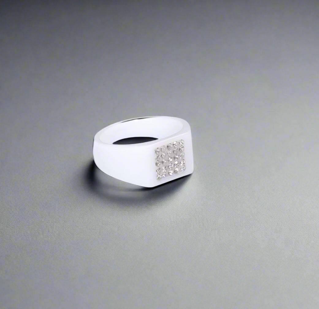 Elegant White Crystal Ring β Stainless Steel with Acrylic Plating